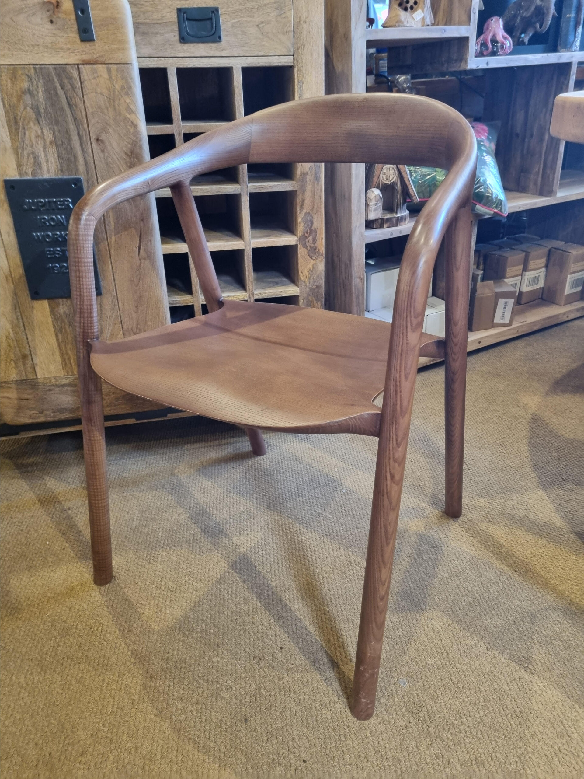 Its curved backrest and armrests provide excellent support, while the tapered legs create a minimalist and modern look.