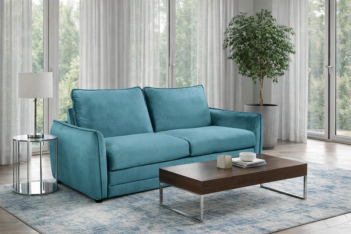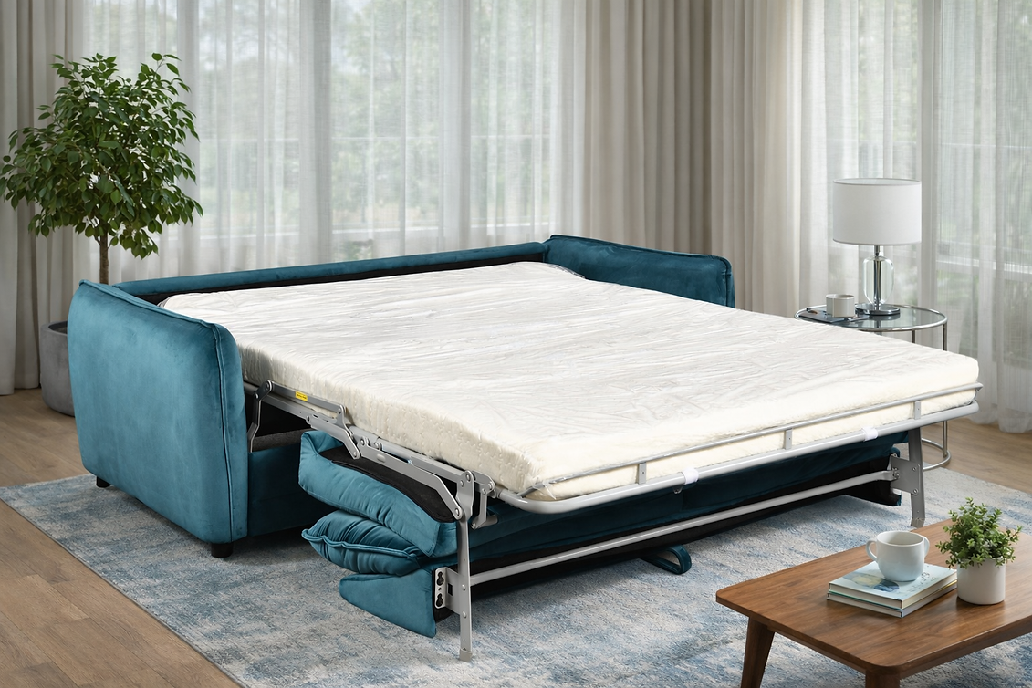 Compact Design: A 2-Seater sofa bed that effortlessly folds out into a double bed.