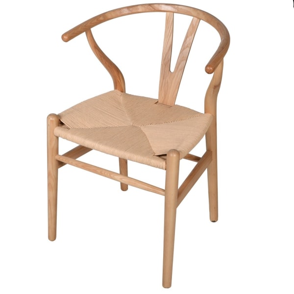 An elegant curved back wishbone dining chair.