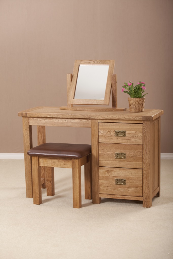 The rustic oak Collection’s dressing table is a typical example of this outstanding range of furniture. Skilfully constructed from the strongest and purest American White Oak with a brushed oil finish, this dressing table would look great in any bedroom.