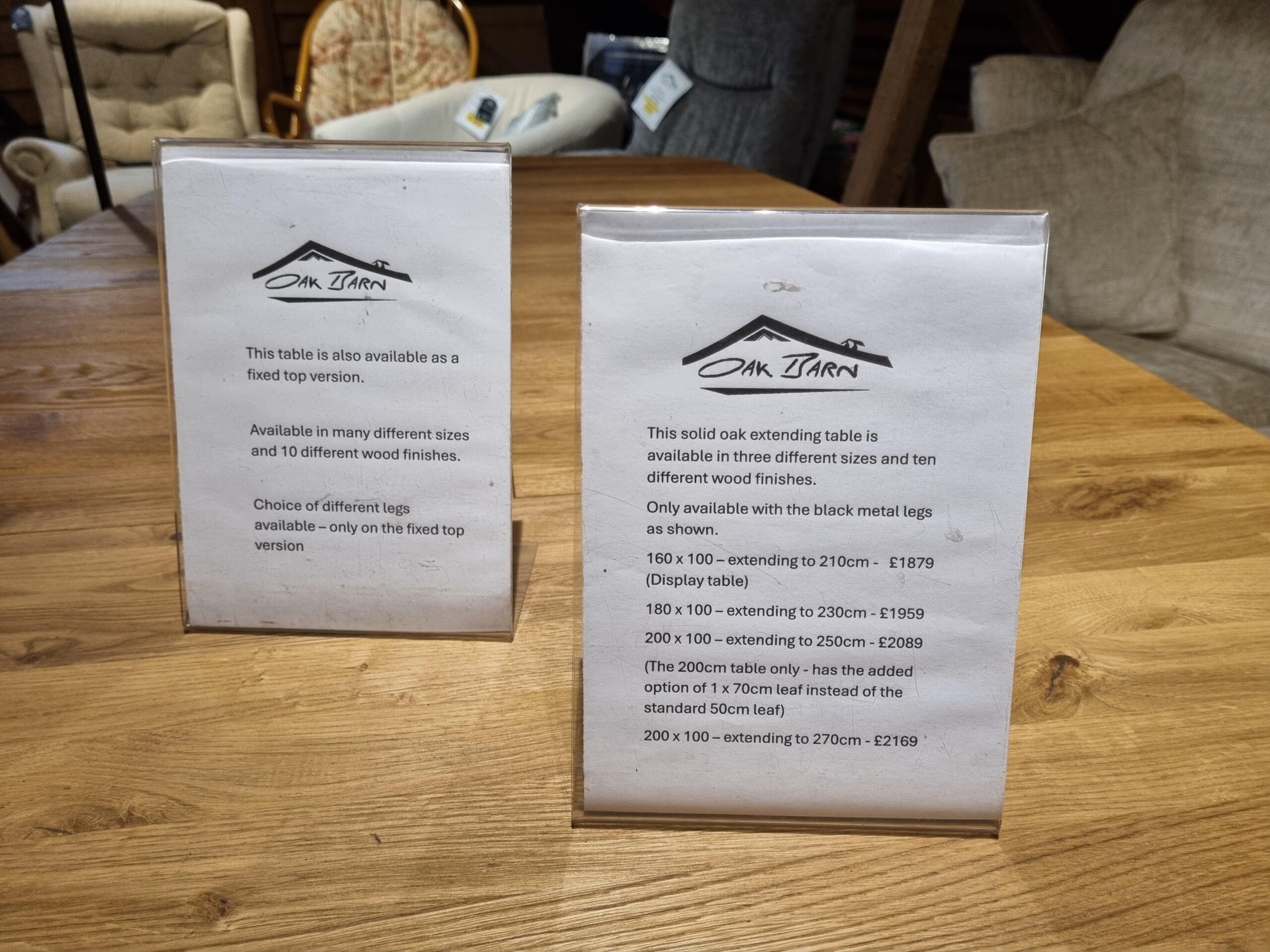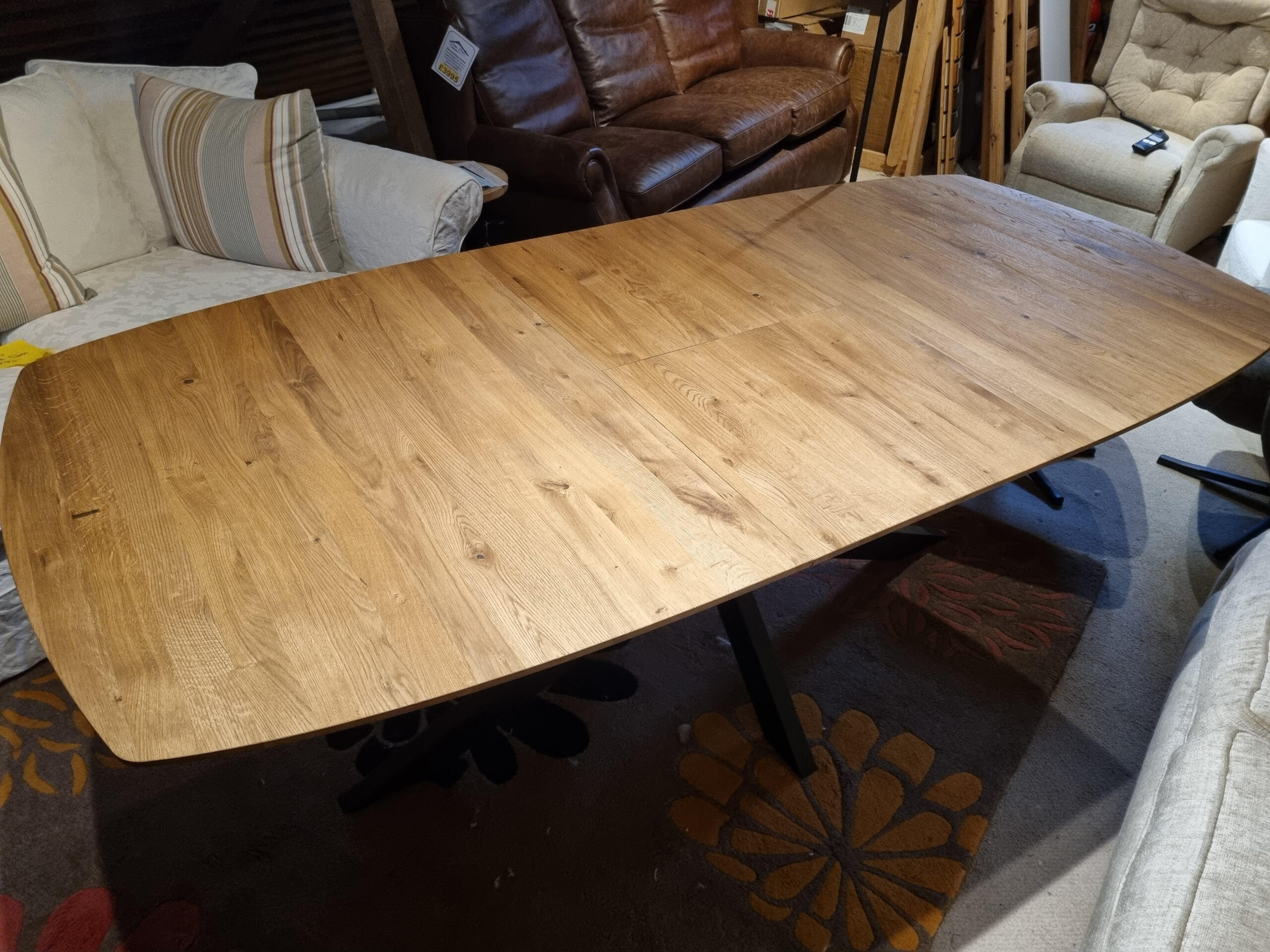 A soild oak extending table with 1 x 50cm butterfly leaf.