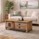 A gorgeous large round weathered oak extending table.
