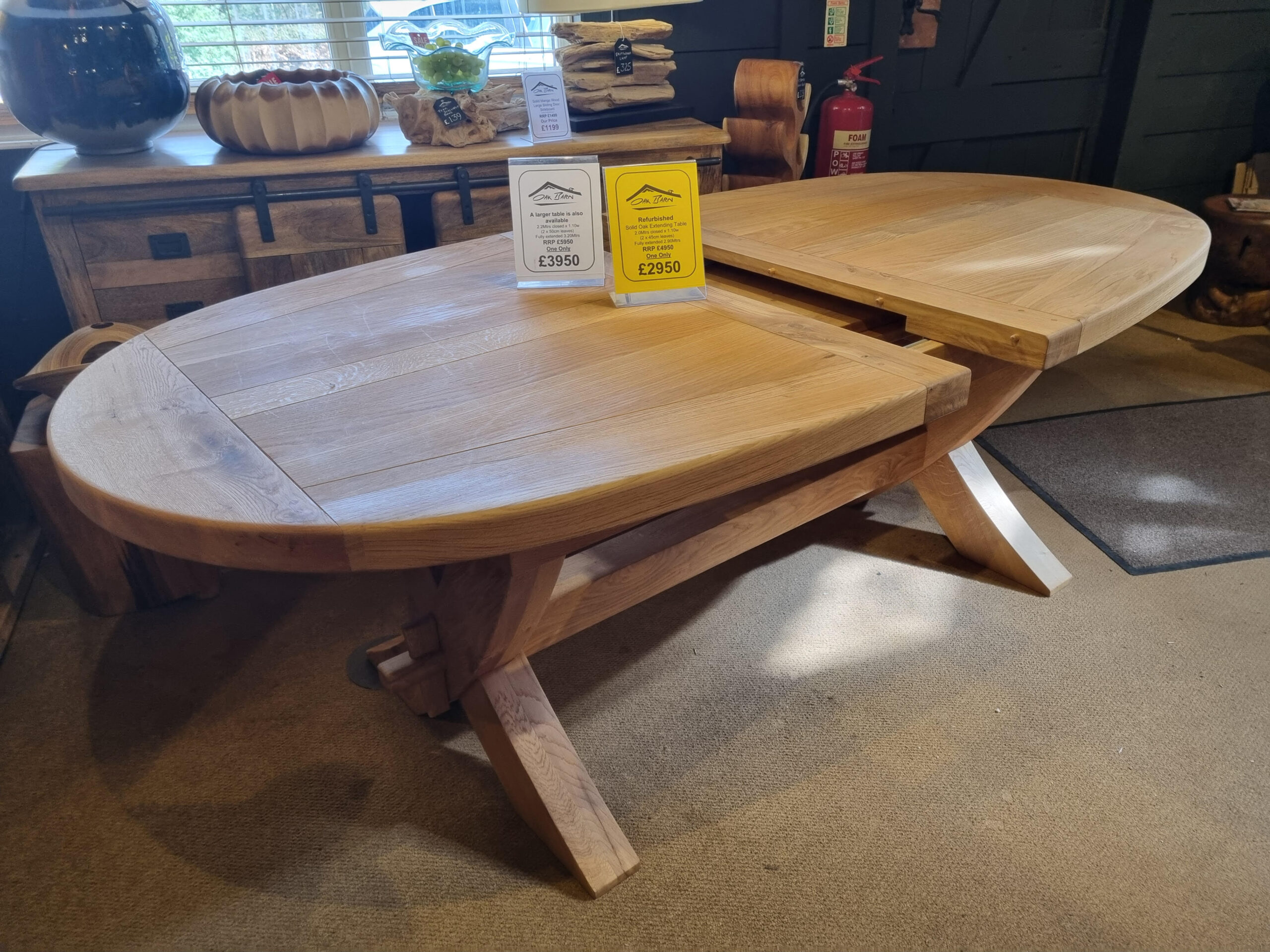A gorgeous large round weathered oak extending table.